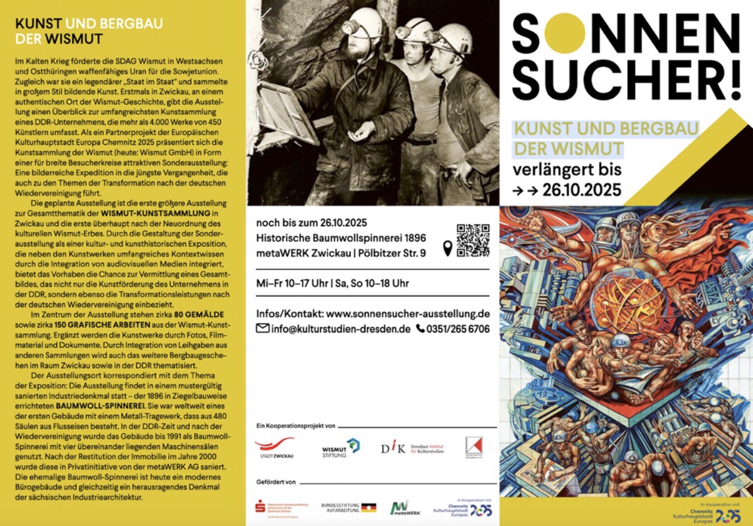 Die Ausstellung bietet die Gelegenheit, Einblicke in die Geschichte des Uranerzbergbaus zu gewinnen und seine nachhaltigen Auswirkungen an einem authentischen Ort zu erleben, der eigens dafür temporär für die Öffentlichkeit geöffnet wird.